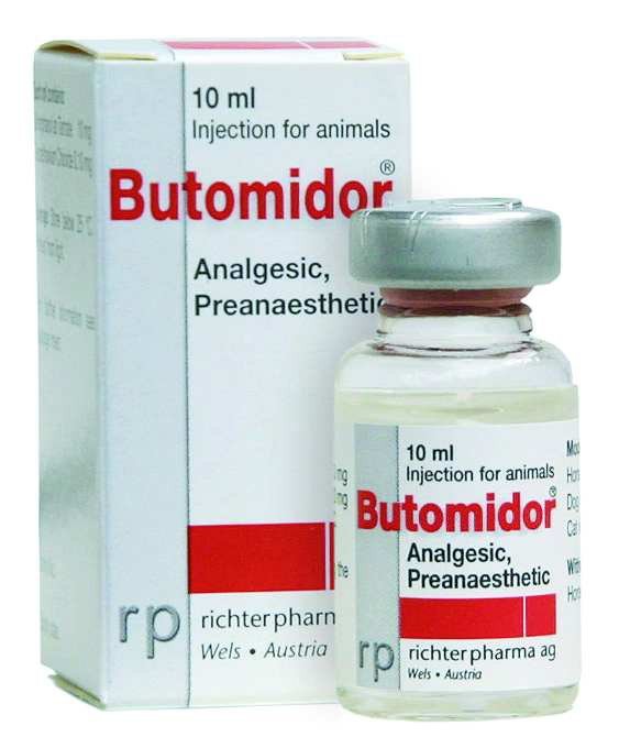 Butomidor is one of our opioid products. It contains 10mg/ml butorphanol, a synthetic opioid agonist/antagonist with potent analgesic and moderate sedative properties. Routes of administration for Butomidor are iv, im or sc. After iv injection Butomidor is effective after two to five minutes for up to four hours. In most countries butorphanol is not a controlled substance- no paperwork for the vet.