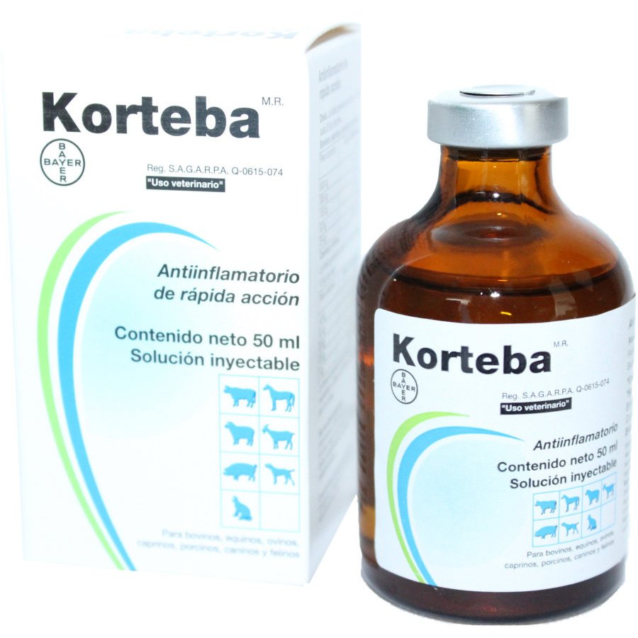 Korteba is a steroidal anti-inflammatory in aqueous suspension, useful in the treatment of inflammatory processes, metabolic disorders and as a complement to antimicrobial therapy, which is used in cattle, sheep, goats, pigs, horses, dogs, cats.