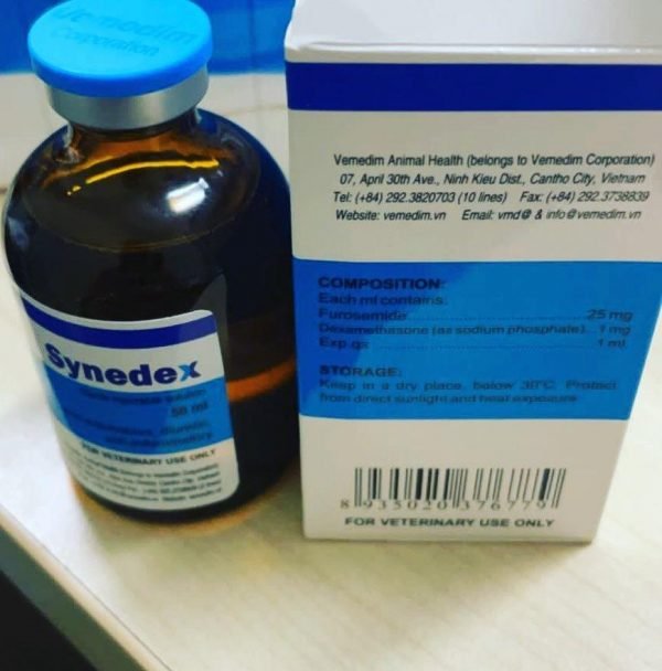 Treatment of primary locomotor system diseases. Coadjutant treatment to the antibiotic therapy in infectious arthritis. Treatment of inflammatory processes in osteopathies, adenopathies, neuropathies, mastitis. To control congestive and painful symptoms associated to these processes synedex 50ml
